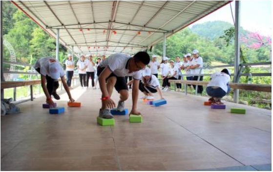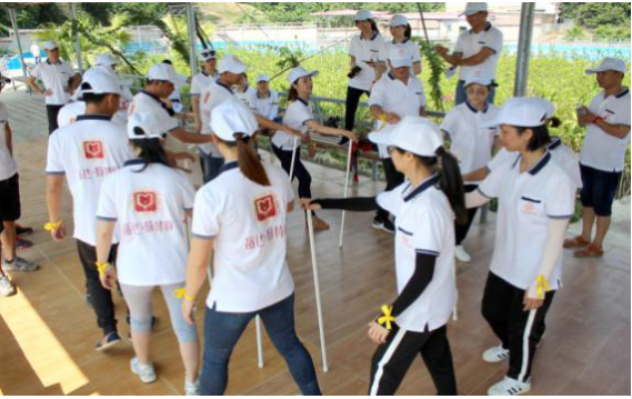 第三个游戏移行换位,主要培养了团结一致、克服困难、协调能力增进队员间相互信任和理解的团队精神。