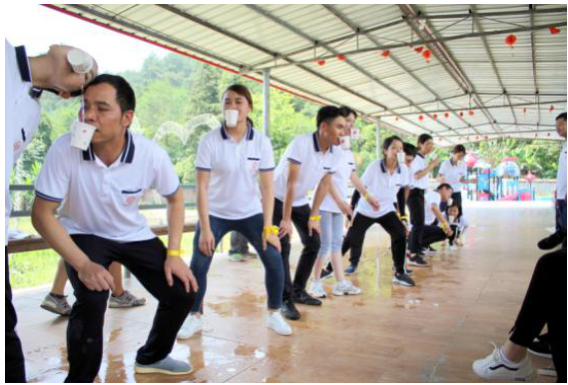 第四个游戏是衔纸杯传水,考验了队员配合、协作能力、增进亲近感,在欢笑中本次活动圆满结束了。