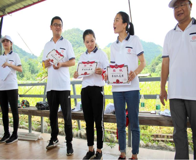 最后根据各组比赛评分和个人表现,公司领导颁发了这次拓展活动奖项:“最佳队伍奖、最默契组合奖、坑队小能手奖”等各奖项。