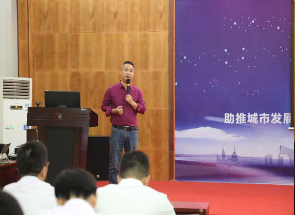 讲座会上,广联达科技股份有限公司技术专家伍君先生首先对BIM的概念以及有关政策进行了解读,重点阐述了BIM在设计、招标以及施工等各阶段的应用与价值,并与现场人员分享了使用BIM技术的部分案例。随后,广联达科技股份有限公司实施工程师袁野对智慧工地进行了介绍。