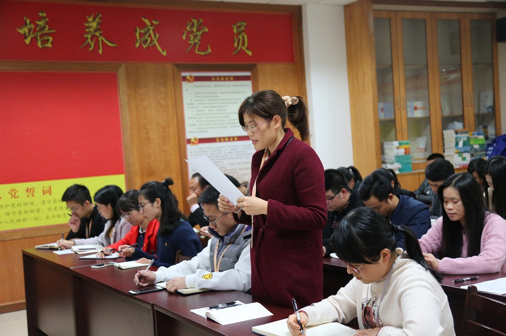 预备党员权芬向大会汇报个人在预备期间的个人表现、个人情况等