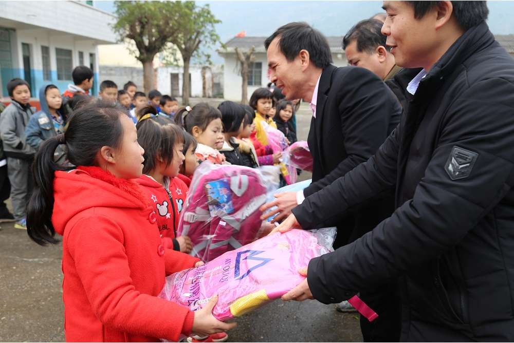 上午10点,一行人首先来到上团村小学,集团党支部书记谢家伟代表集团公司向学校捐赠5000元教育基金,兴宾区委办为学生们送来了书包、文具等学习用品,学校校长代表学校接收5000元教育基金,学生们接过书包,老师与学生们都纷纷表示感谢,谢书记讲到“知识改变命运,希望小朋友们从小努力学习,常怀感恩之心,长大后都能成为祖国的栋梁,为建设家乡、改变家乡努力,用自己的行动回报国家、回报社会”。之后,慰问组一行来到上团村委,谢书记代表集团公司为21户贫困户、9户五保户送去慰问金共15000元。随后,慰问组走访慰问了两户贫困户,谢家伟书记与杨杰副主任亲切的与贫困户交谈,关切的问候他们的身体状况,并详细了解贫困户家中的具体情况,叮嘱他们保重身体,鼓励他们乐观面对生活。
