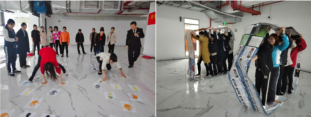本次主题活动主要是以趣味游戏形式进行,首先是热身接力“夹气球”,女职工们齐心协力,即便是混合小组依然配合完美,以平局收场;接下来是“夹乒乓球”接力,刚做完热身运动的她们有些手抖,但不妨碍现场的比赛气氛;随后是反向思维的“踩手印脚印”游戏,接力开始之前大家都呼声“太难”,比赛时尽管惹得笑声连连,但女职工勇于实践,不断总结的精神值得赞扬;最后是激烈无比的“无敌风火轮”接力赛,即使道具中途破损,急中生智的她们仍在不违背比赛规则的情况下坚持完成了比赛,众人欢呼雀跃。