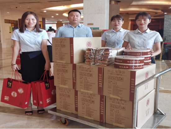 金秋九月,团圆佳节。为弘扬中华优秀传统文化,体现公司对全体员工的人文关怀。自9月8日起,由集团人力资源部组织统筹各公司综合部做好员工福利发放工作,9月9日来宾区域各公司在裕达国际酒店进行福利领取,其他异地公司福利陆续发放中。