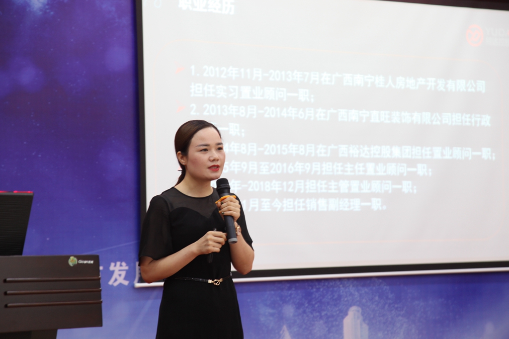 与此同时,本次培训特别邀请到地产二公司营销二销售部黄艳芳副经理为各位学员带来宝贵的经验分享。首先,她从自身在裕达由职场小白到成长为一名优秀的销售精英的成长经历:在面对新的环境、新的团队、新的挑战时,要摆正心态、坚持学习、积极主动沟通、提高执行力,不断进步并取得业绩。其次结合在裕达的项目销售经验,分别从接待客户技巧、客户回访和逼定技巧及销售心态进行分享,现场以学员互动交流为主,黄副经理也对学员提的问题一一作出了解答,还结合课程进行了情景表演,摆脱枯燥的理论宣贯,学员反响热烈,对未来的职业发展、规划与定位有了更明确的指引方向,受益匪浅。
