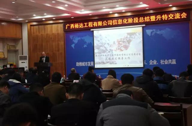 在集团七楼大会议室召开了信息化阶段总结暨升特交流会,集团高层领导出席了会议,集团六中心主管以上、各项目部中层副职以上管理人员及项目部专兼职信息管理员、工程公司全体员工参加了会议,南宁公司、武宣公司项目部及相关人员通过视频会议参加本次交流会。