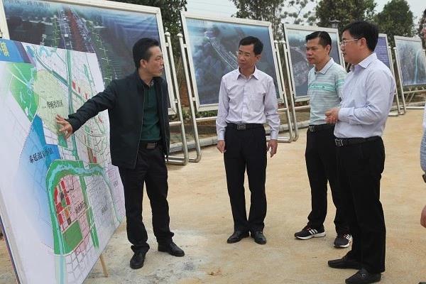 调研组抵达项目后,来宾市招商促进局邱耀兵局长首先向调研组简要介绍了来宾近年来的发展状况,随后由我司梁锋副总裁详细讲解了该项目的规划、发展与未来,并针对调研组提出的问题进行一一解答。