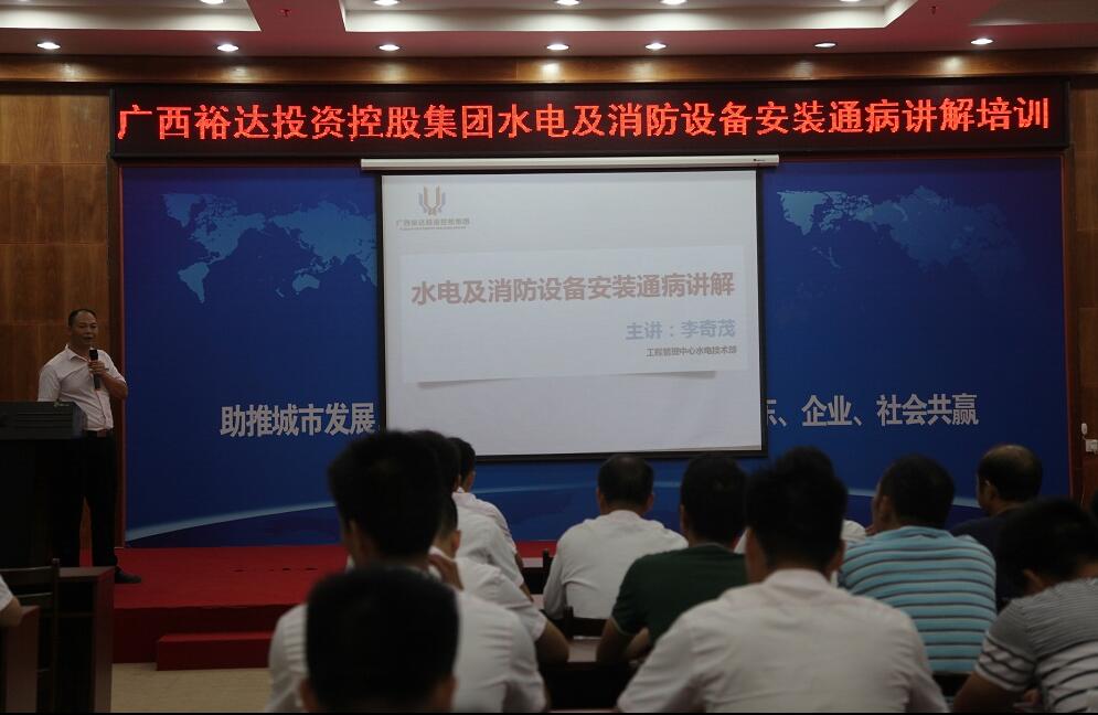 为更好地发现及解决各项目水电及消防设备安装通病,防止各项目在施工过程中出现重复问题,更好地提升工程管理质量。集团培训中心于2016819日上午在集团七楼大会议室组织开展了水电及消防设备安装通病讲解培训。参训对象为工程公司项目负责人、水电施工员、各项目班组总工等,共70多人,武宣及南宁项目的参训人员通过视频参与本次培训。本次培训工程管理中心水电副经理李奇茂担任主讲。