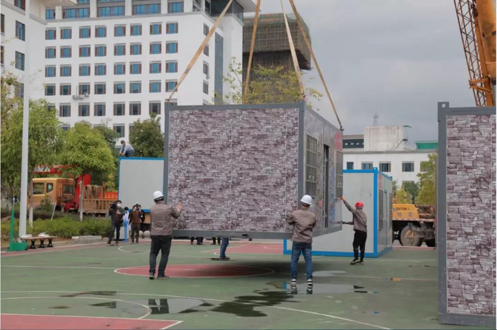 由裕达工程承建的来宾版“方舱医院”,经过24小时昼夜不停连续施工,多组人员交叉作业,于2月13日晚12点建成完工,将于今日陆续交付来宾市人民医院、来宾市兴宾区人民医院使用。