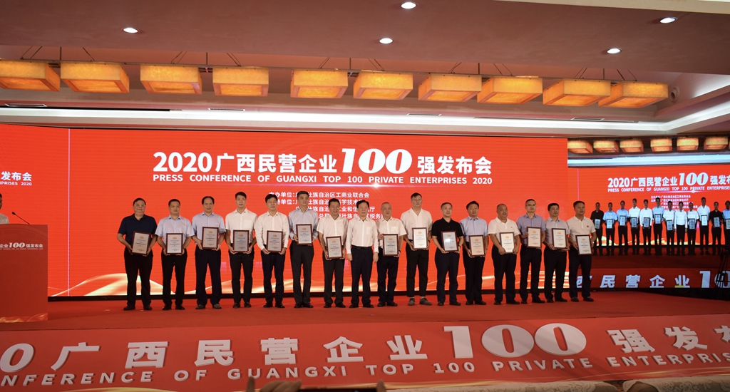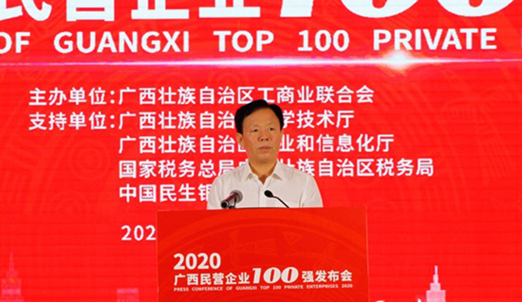 7月31日下午,2020广西民营企业100强发布会在南宁沃顿国际大酒店举行,发布会认真贯彻落实习近平总书记在企业家座谈会上发表的重要讲话精神,公布了广西民营经济发展取得的阶段性成果,自治区党委常委、统战部部长、自治区非公经济领导小组副组长徐绍川,自治区人大常委会副主任杨静华,自治区人民政府副主席、非公经济领导小组副组长费志荣,自治区政协副主席、自治区工商联主席磨长英,自治区人民政府副秘书长、一级巡视员黄植建出席会议。会议由自治区党委统战部副部长、自治区工商联党组书记熊春寒主持,我集团董事长邓亚保应邀出席。