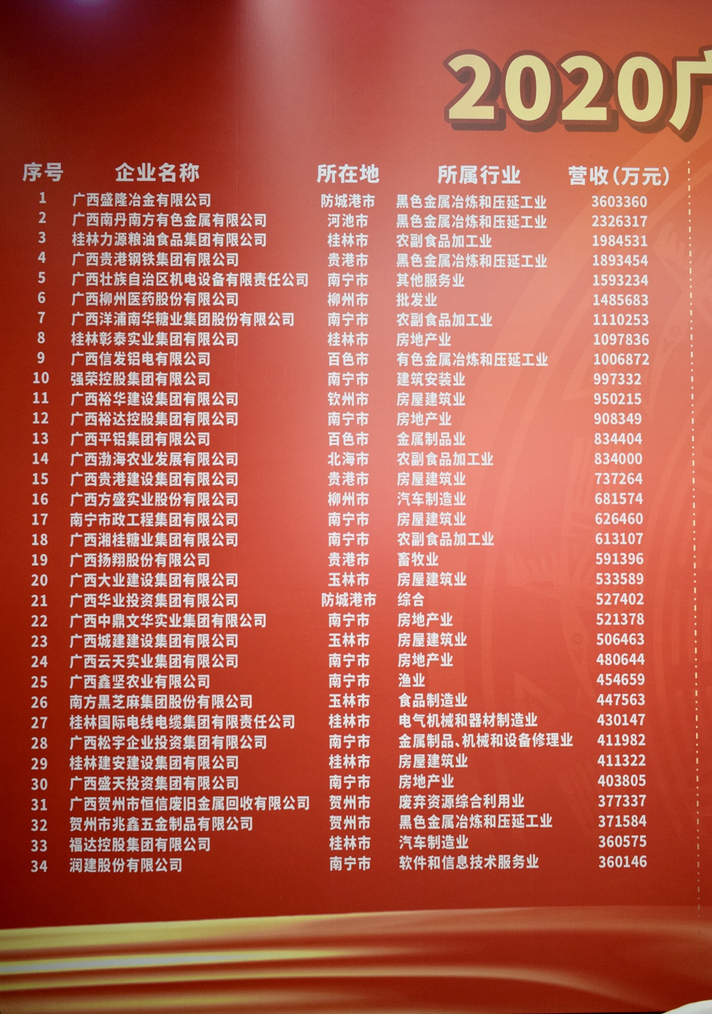 2020年广西民企100强名单发布 ——裕达控股集团荣获2020年广西民营企业第12强