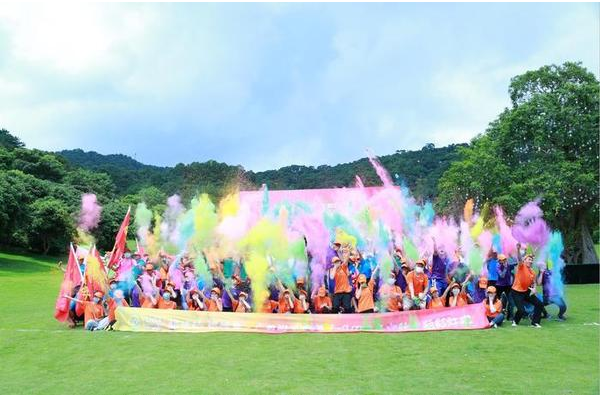 活动进入到尾声,全体参加人员在舞台前进行合影,最后大家拿起手中的彩虹粉在空中挥洒,活动在一片欢声笑语中结束了。