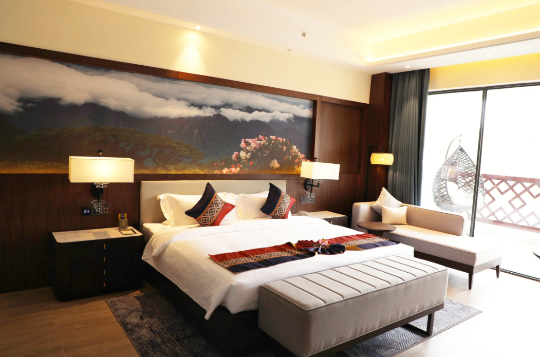 广西裕达旅游集团作为广西裕达控股集团下属子集团,目前正在经营的酒店有南宁裕达国际酒店、来宾裕达酒店、来宾饭店、武宣裕达酒店,金秀饭店作为裕达控股集团投资兴建的第五家酒店,是按照五星级标准建造,并融入了当地瑶族特色元素,是一家集酒店住宿、餐饮、休闲商务、康养娱乐于一体的商务度假式酒店。酒店占地面积14万平方米,共计拥有720间瑶族主题客房、6间不同规格的多功能厅及宴会厅、1间瑶族特色主题餐厅等,集体验性与舒适性于一体,能够满足商务、会议、旅游、宴会等商业需求。