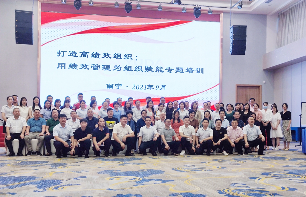 为进一步加强管理人员正确认识绩效管理文化,通过规范运用考核工具、绩效辅导改进组织绩效,从而推动公司经营目标的实现。控股集团人力资源部于9月4-5日在南宁酒店七楼多功能厅组织开展《打造高绩效组织:用绩效管理为组织赋能》专题培训,培训以线下面授的形式开展,控股集团高层、各子分公司总助级以上人员、人力资源负责人等约共87人参加了此次培训。
