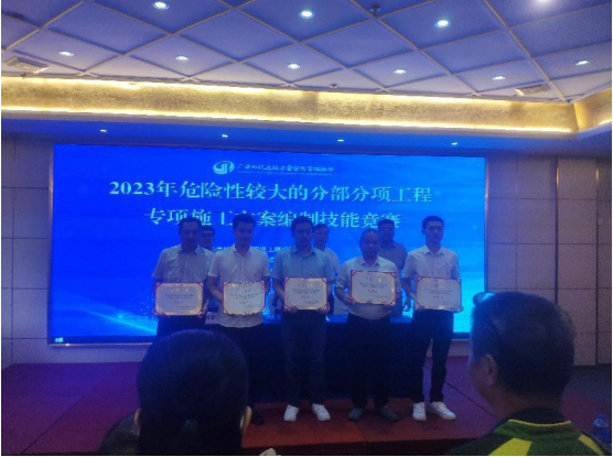 6月29日,工程公司在南宁参加由广西工程建设质量安全管理协会主办的2023年全区建设工程危大工程专项施工方案编制技能晋级决赛,喜获优胜奖。