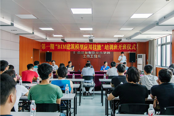 广西建职院有关负责人介绍,广西建职院作为广西最大和最主要的建筑类人才培养基地,一直十分重视BIM技术的人才培养和推广应用工作,广西BIM技术发展联盟与土木工程系共建BIM技术工程实训基地,并将首期“BIM建筑模型应用技能”培训班放在广西建职院开办,为学院师生提供了良好的实践实训平台,是对学院的肯定和信任,并为学院进一步加强与区内BIM技术专家和应用人才的交流,提供了良好的平台。