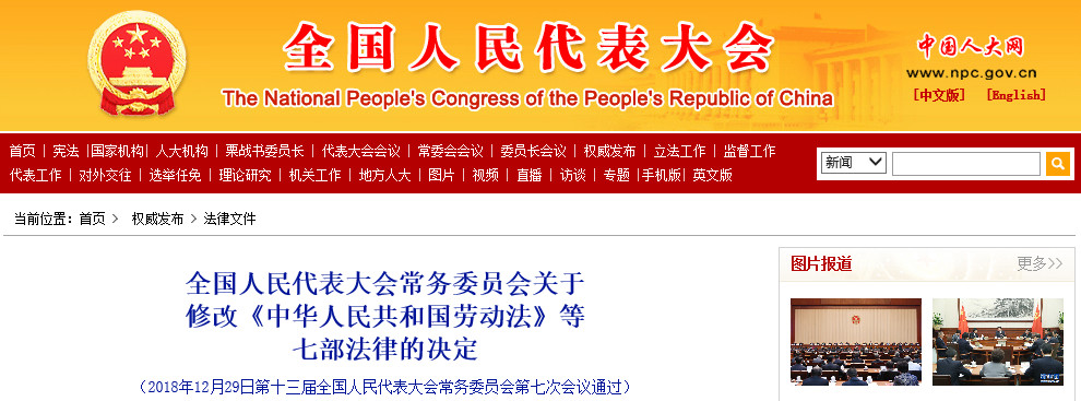 修改《中华人民共和国劳动法》等