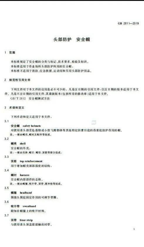 相比较于旧版GB2811-2007,新版安全帽标准GB2811-2019《头部防护
