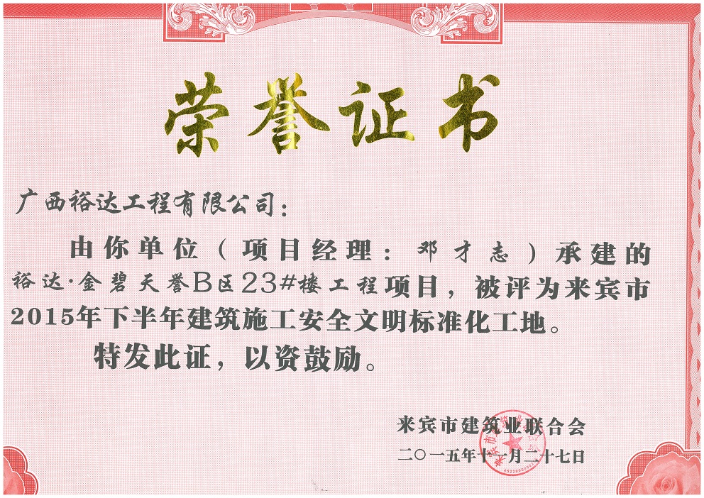 2015年下半年建筑施工安全文明标准化工地(金碧天誉B区23#楼)
