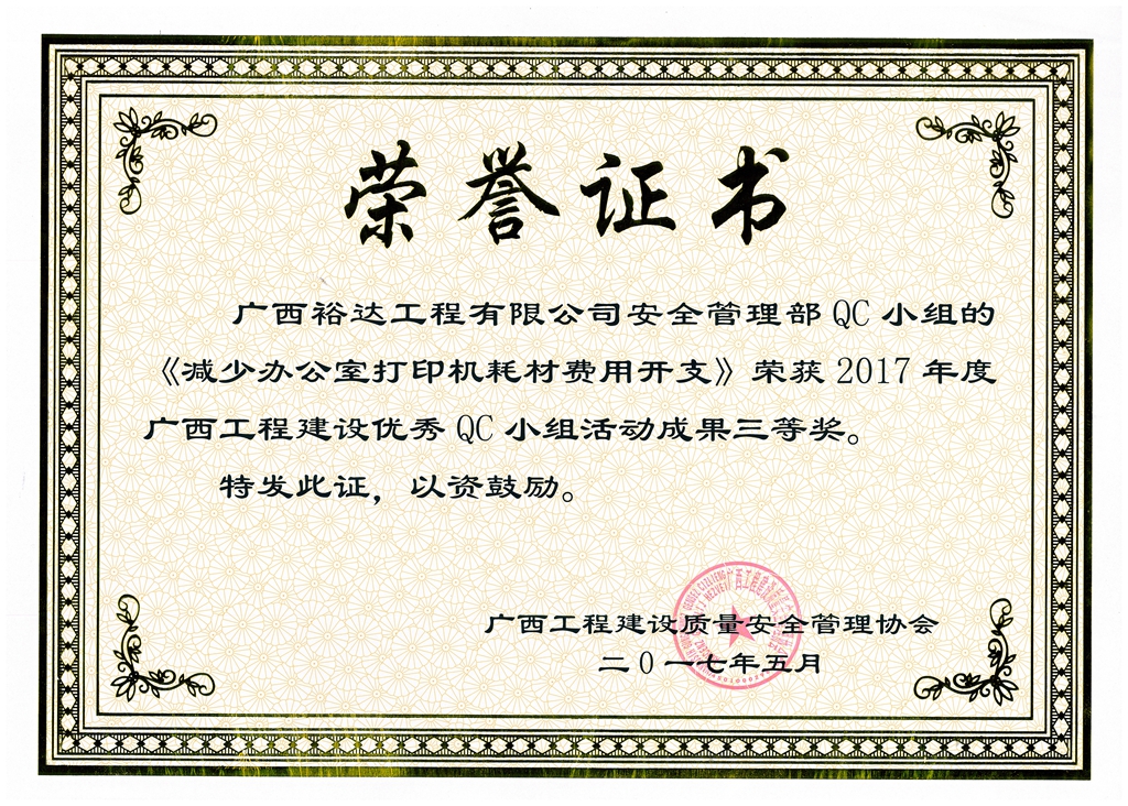 2017年广西工程建设优秀QC小组活动成果鼓励奖