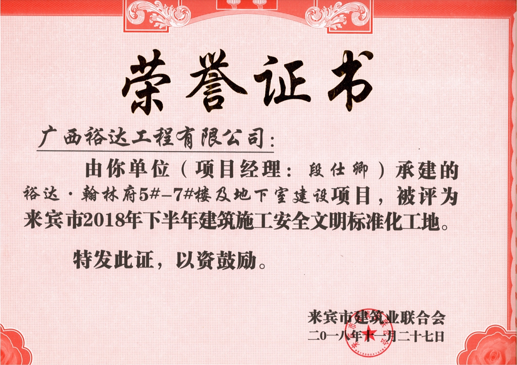 来宾市2018年下半年安全文明标准化工地(裕达。翰林府5#-7#楼及地下室)