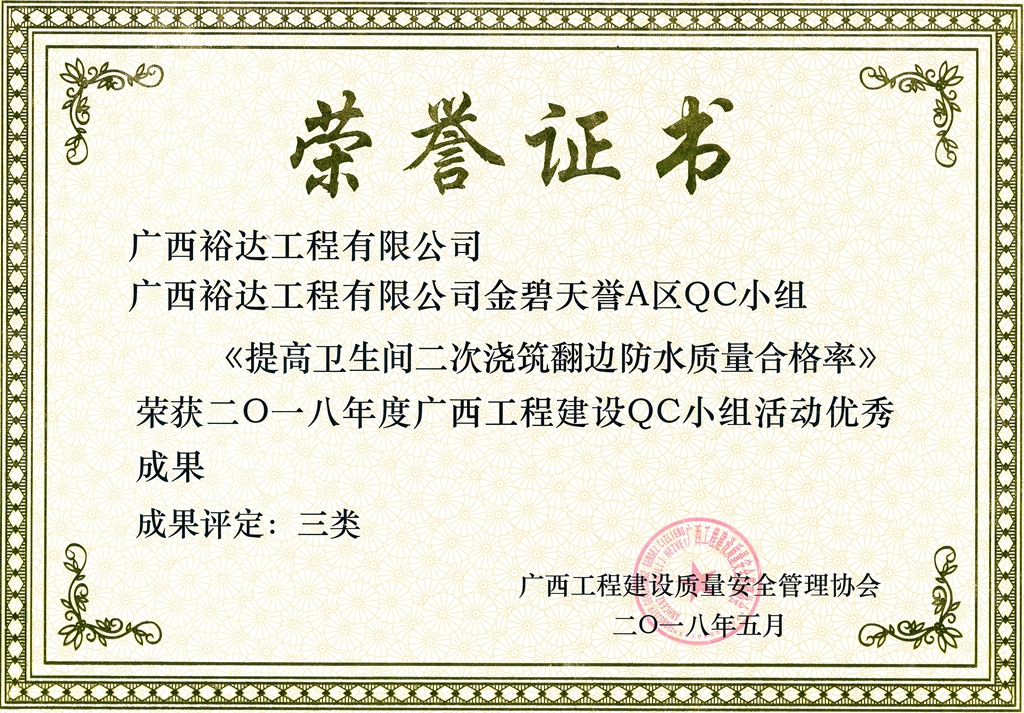2018年度广西工程建设QC小组活动优秀成果