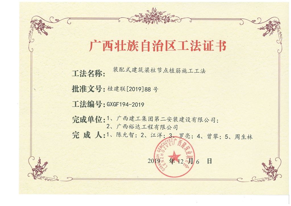 装配式建筑梁柱节点植筋施工工法(广西建工二安)