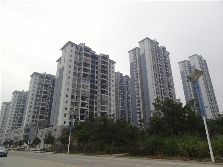 象州县教师保障性住房项目位于象东新城南区,东邻规划三路,南邻规划道路。项目规划净用地面积53390.84平方米。规划布置13栋住宅楼及配套公建,沿小区东侧和北侧靠路边设沿街商铺。总建筑面积253642.69平方米,占地面积为15555.65,其中地上建筑面积(不含架空面积)231711.98 平方米,包括住宅建筑面积206492.68 平方米共1601户;商铺建筑面积24671.97平方米;设备用房建筑面积352.17平方米;垃圾站195.16平方米,另:12,13#楼架空层建筑面积(按一半算)947.39 平方米。地下建筑面积: 20983.32㎡。机动车停车位共625个,地上127个,地下498个。地下非机动车停车位1640个。该工程被评为2013年(上半年)自治区建筑施工安全文明标准化工地。